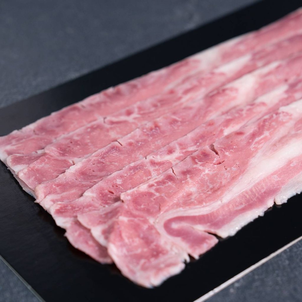 Hovězí slanina z Black Angus od Miguel Vergara v tenkých plátcích. Jemně uzená, krásně šťavnatá a po opečení křupavá. Ideální do burgerů, sendvičů, k vajíčkům nebo jako upgrade ke steaku. Vakuově balené.
