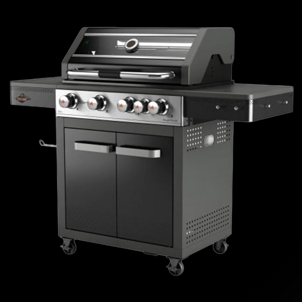 Výkonný plynový gril pro rodinu i párty, zvládne nakrmit i větší partu. Má 4 hlavní hořáky + boční hořák, izolované víko se skleněným okénkem, smaltované litinové rošty a systém odvodu tuku GrillSmart. V balení je rovnou otočný rožeň (nosnost až 16 kg) a ochranný kryt.