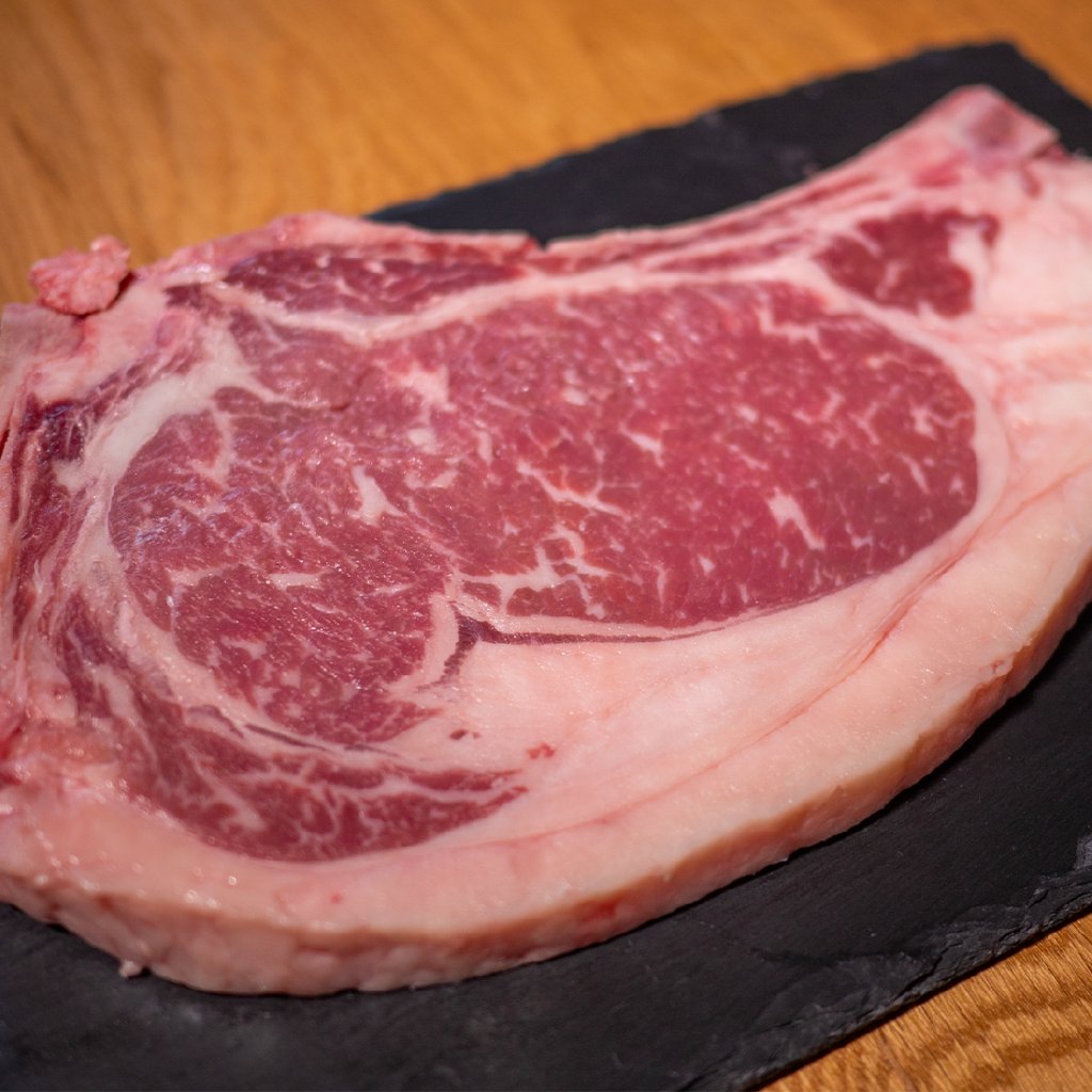 Výjimečný steak z hovězího masa Angus s kostí ze šestého až dvanáctého žebra.