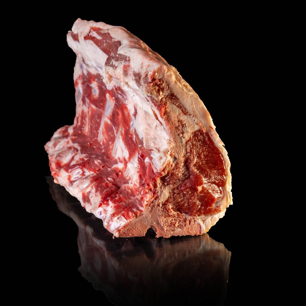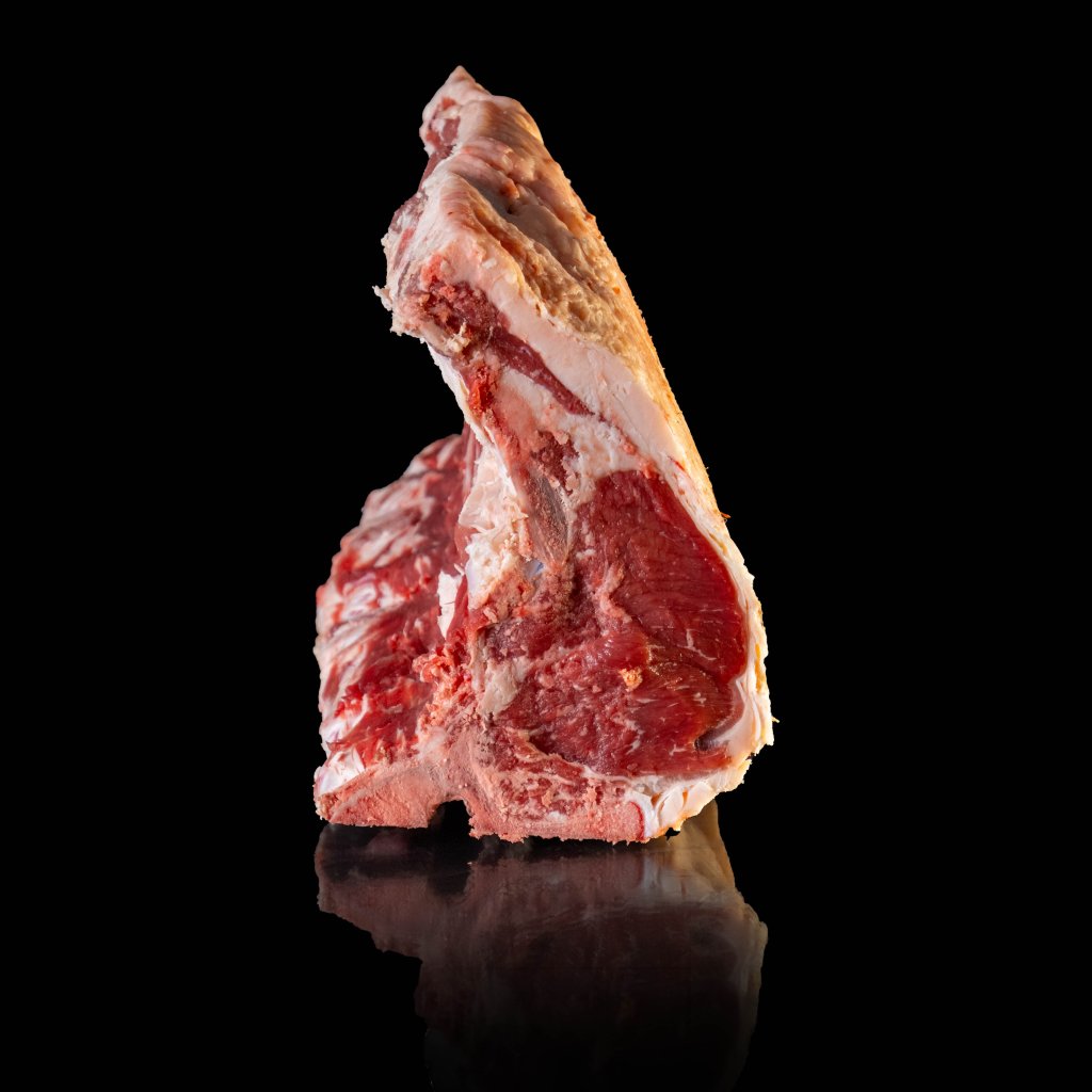Řez, který spojuje dvě nejvyhledávanější části hovězího masa — tenderloin a striploin. Menší část tvoří jemný tenderloin, zatímco větší část představuje šťavnaté entrecote. Uprostřed masa zůstává ikonická kost ve tvaru písmene „T“, od které tento steak získal své jméno.